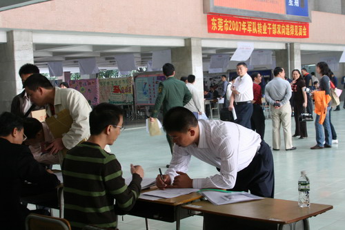 11月12日,东莞市2007年军队转业干部双向选择见面会在我院4号楼大厅举行。