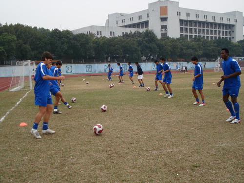 院足球协会的大学生球员陪同俱乐部成员参观了我院的校园环境后,双方在田径场切磋了球艺。香港专业球员的团队精神和精湛的球艺,受到了同学们的好评。