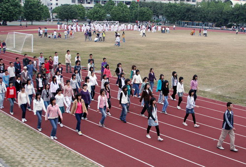 今天,距校运会开幕只有4天了!参赛运动员和参加开幕式的演职人员,利用最后的时间进行训练与彩排,争取创造最佳的运动成绩。