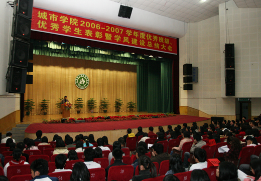 学生处处长章德胜副教授主持会议,并宣读了学院《关于表彰2006—2007学年度先进班集体、校园“十佳”、优秀大学生标兵、优秀大学生、优秀学生干部及奖学金获得者的决定》。在热烈的掌声中,东莞理工学院副院长、城市学院院长