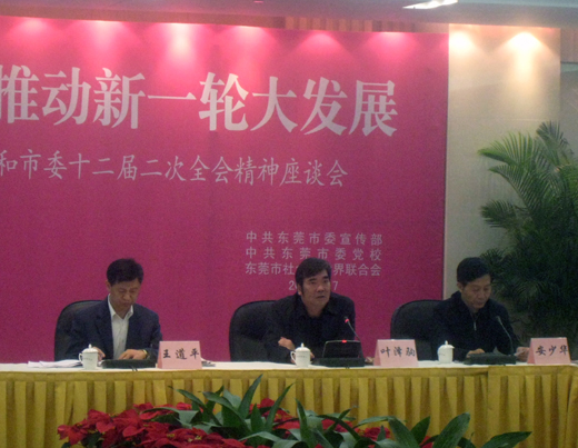 1月7日,市委宣传部、市社科联联合召开了主题为“以新一轮思想大解放推动东莞新一轮大发展”的座谈会,市委常委、市委宣传部部长王道平与来自全市社科理论界的学者参加了讨论。我院院长安少华教授、宣传部部长何鹏举副教授、社科系主任陈丁堂教授、学报编辑部主任徐世杰教授及社科系十名教师应邀与会。