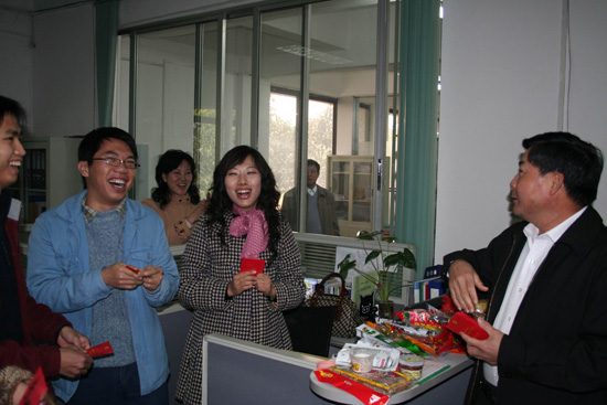 据悉,大年除夕,学院盛情宴请了留校过年的学生,院领导还与学生同吃团年饭。新年第一天,院领导向节日坚守岗位的清洁工人、保安、饭堂工作人员拜年,分别派发了利是。