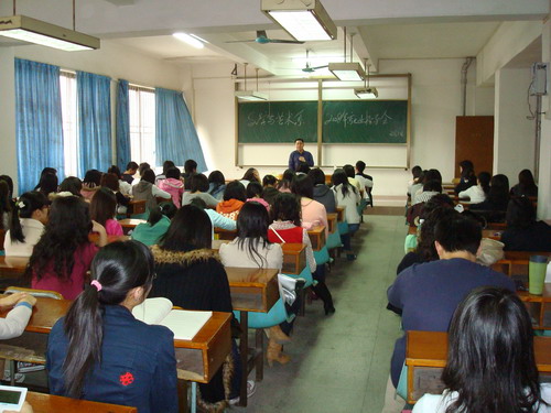 江老师深入浅出地讲解了求职简历的内容以及制作简历应注意的问题,他还结合自己的经验为同学们讲解了求职应聘的礼仪举止等常识。他诙谐幽默的讲述,不时博得同学们的热烈回应。
