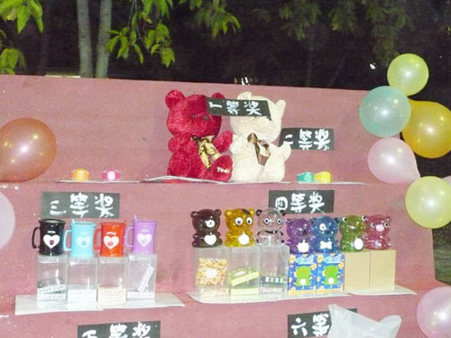 场内共设置了11个游戏摊点供全院师生一起游玩,参与者可以凭奖券获得各种精美礼品,很多项目前都排着长长的队伍,场内笑声、欢呼声不断。计信系主任牛熠和党总支书记廉玉忠也前来“游园”,并将自己的奖券送给了两个女生,祝她们节日快乐。牛主任满面笑容地说:“此次活动的创意非常好,不仅展现了计信系的特色,也让计信系的同学们过上了一个非常开心的节日。”