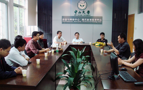 吴主任向我院考察组介绍了数字化校园建设的意义以及中山大学数字化校园建设的历程与经验,中大信息与网络中心信息管理部辛小霞老师介绍了校务管理系统的应用情况,该中心的技术人员演示了校务管理系统的各个子系统。我院考察组的同志根据学院的实际情况,就有关问题与中大信息与网络中心的人员进行了交流。