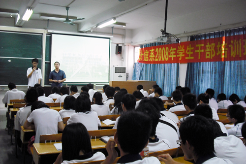 为加强系内团总支与学生会的联系,计算机与信息科学系于5月11日举办了为期一天的学生干部培训班。接受培训的人员包括系团总支和学生会干部、各班班长和团支部书记。培训内容分为理论教育和户外素质拓展训练两大部分。在理论学习中,辅导员以互动的方式引导学生提出工作中遇到的问题,以及解决的办法,请有经验的学生干部进行点评。