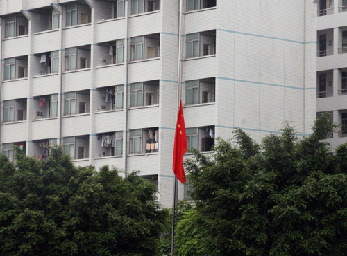 这一刻,异常静默。降了半旗的校园上空,只有警报声在呜咽。