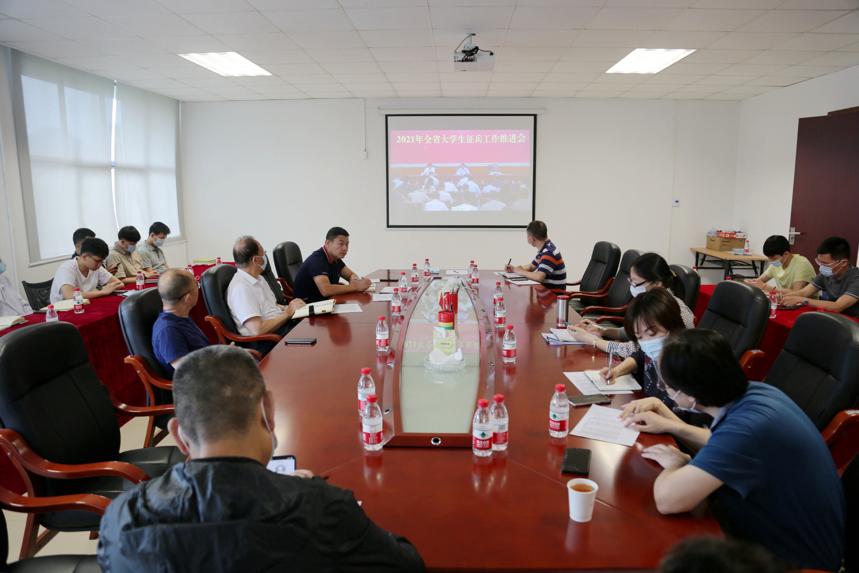4月19日上午,2021年全省大学生征兵工作推进会在省教育厅19楼会议室召开,省教育厅二级巡视员邱克楠同志出席会议并讲话。我校在行政楼401会议室设立分会场,校长王卫平、党委书记章德胜,党政办、学生处、教务处、财务处、武装部负责同志,各教学单位负责同志,征兵工作辅导员、廉洁征兵监督员等参加会议。