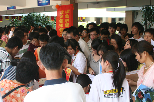 从14日开始,各系部着力装扮迎新“大本营”,无论是志愿者、礼仪小姐还是引路人员,都表现出了极高的热情。35℃以上的高温烘烤着大地,一阵阵热浪不时飞扑到志愿者的身上。志愿者脸上流淌的汗水来不及擦干,湿透的衣服也来顾不上换。文学与传媒系,这两天共有近百名志愿者在现场服务。
