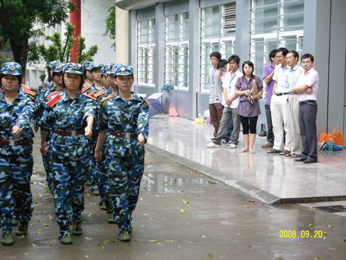 9月19日,管理系主任罗余才教授、系党总支副书记吴春庚,以及王兴、卢淑芳、陈彬、张宏渝等老师及学生会成员,到操场探望军训同学。