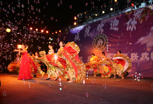 9月25日,东莞理工学院城市学院2008级“庆国庆、迎新生”暨军民联欢晚会在田径场隆重举行。