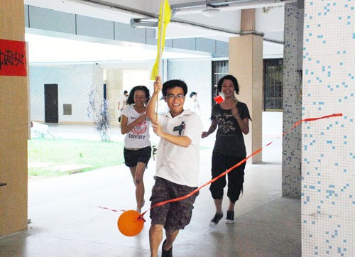 下午2:45,随着礼炮声的响起,第一批参赛队伍争先恐后地向指定地点冲了过去,在到达第一个指定地点大礼堂之后,各支参赛队伍用准备好的材料,以最快的速度制作队旗,然后依照地图指示位置,前往下一个地点,并在比赛过程中完成各种趣味游戏和回答一些关于学院建设、学生会架构以及专业课程等问题。