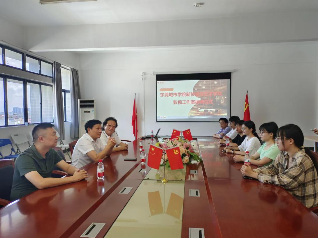 新传媒与艺术学院影视工作室揭牌仪式于2024年7月10日上午11点顺利举行。东莞城市学院执行校长方伟华,新传媒与艺术学院院长张征,党总支书记兼副院长张宏渝、网络与新媒体系教师曾子鸽、以及全体工作室成员参加此次会议。会议由张宏渝书记主持。