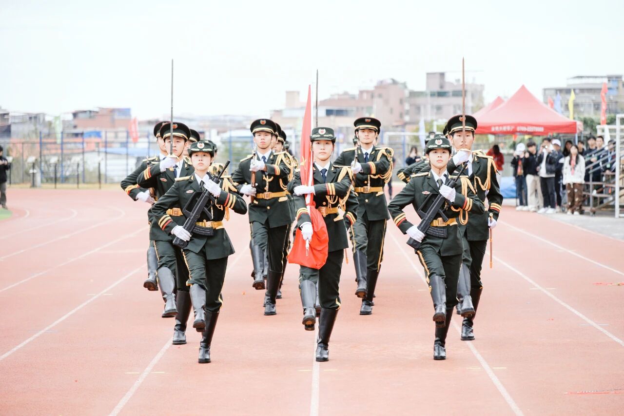 激昂的旋律响彻田径场,国旗护卫队迈着铿锵有力的步伐庄严引领,校旗方阵、各学院方阵与教职工方阵紧随其后,满怀热忱与蓬勃活力依次走过主席台。各方阵步伐整齐、精神抖擞,充分展现出我校师生昂扬向上、奋发进取的精神风貌。