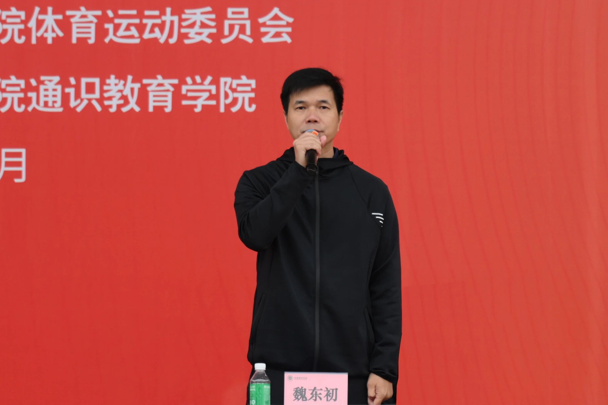 入场完毕,全体起立高唱中华人民共和国国歌,在庄严的国歌声中,全体人员注视着五星红旗冉冉升起。校长李振华致开幕辞。他首先向全体与会的领导、运动员、裁判员、师生们致以问候,向精心筹备盛会的工作人员、裁判员、教练员及后勤保障人员表示诚挚感谢。致辞中,李振华校长引用习近平总书记关于“建设体育强国是全面建设社会主义现代化国家重要目标”的论述,强调体育运动关乎民族振兴、人民幸福与青年成长,体育教育作为学校教育的重要组成部分,是落实立德树人根本任务、促进学生全面发展的关键途径。同时,李振华校长谈到学校始终重视体育教育,完善教学训练条件、营造良好校园氛围,学子在各类体育竞赛中屡创佳绩。李振华校长介绍,本届运动会以“运动聚力凝共识,拼搏扬帆赴未来”为主题,恰逢全国第十五届运动会召开,他号召大家践行“更高、更快、更强”的奥运精神。最后,他希望运动员遵守规则、发扬拼搏协作精神,裁判员秉持公平公正原则,工作人员与教职工尽职尽责,共同确保运动会圆满举办。