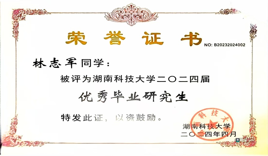 主持湖南省研究生科研创新项目1项,参与国家自然科学基金项目2项在InternationalJournalofMiningScienceandTechnology ReliabilityEngineering&SystemSafety(均为中科院一区top)、煤炭学报、中国安全科学学报等国内外顶级期刊发表学术论文10余篇,授权发明专利1项,实用新型2项,受理发明专利3项;荣获湖南省优秀毕业研究生、湖南科技大学校级优秀共青团员及优秀研究生、东莞城市学院优秀毕业生等荣誉称号。但在他心中,这些成绩的意义,远不如在城院打下的那份底色来得珍贵。他深知,没有本科阶段打下的扎实基础,没有老师们的一路指引,没有母校提供的成长沃土,就没有今天的自己。尤其是张飞老师多年来持续的关心与指导,从智慧应急到防灾减灾,那些跨越时空的对话,始终照亮着他前行的路。