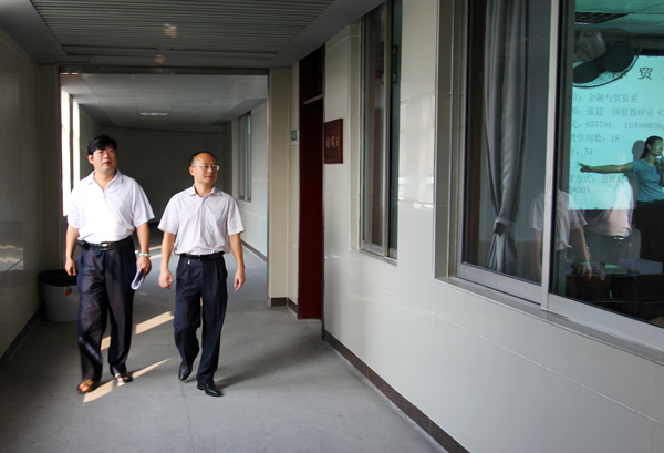 8月28日,副院长程发良与教务处处长邓成良、总务处处长李奇、实验中心主任周梓荣对教室和多媒体设备进行了检查。教务处召开了各科室负责人会议,对开学准备工作进行了协调和布置。8月29日,教务处组织召开了各系部教学秘书会议,详细布置了开学准备工作,发放了调整后的课程总表和班级课表,要求领了课表的老师和学生干部签名,并要求各系教学秘书开学第一周每天逐一通知第二天有课的教师。8月30日,教务处组织发放了教材,本学期共需各种教材525种,已到教材521种,到位率达99.24%,其余4种教材也将于第一周到位。8月31日,教务处在教学楼、实验楼、机电楼共安排了8名工作人员,对上课教师的到位、教学运行和教材到位等情况做了全面的检查,没有发现异常情况。
