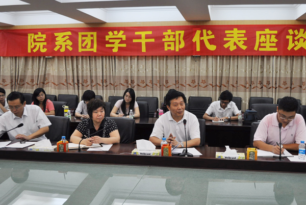 “申请课室的程序太繁琐了,可否减少一些申请环节?”学生干部向学院领导提出了许多好的建议。10月27日,院系团员及学生会干部代表座谈会在315会议室举行,院长安少华亲临会场听取意见。