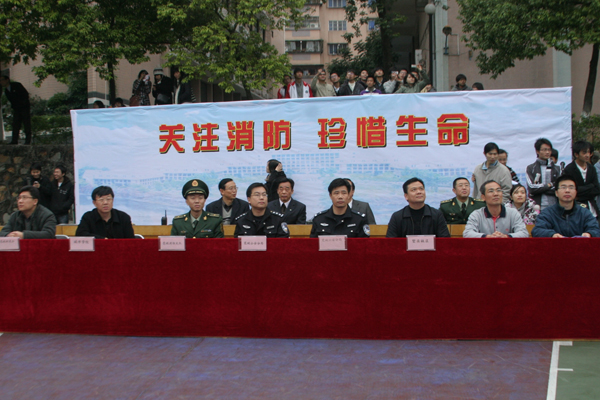 演习前,同学们观看了消防教育片,了解了消防常识及消防器材使用方法等。整个演习按照发现火灾、疏散人员、灭火救人、医护救助等步骤紧张上演。消防车、消防人员、武警人员现场处理灾情,场面有条不紊。