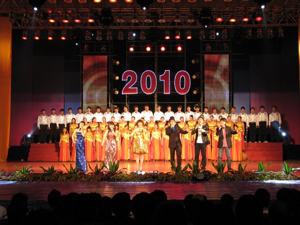 管弦奏华彩,欢歌迎新年。12月28日晚,我院隆重举行2010年新年文艺晚会。市人大副主任冯同恩,广东鸿发集团总裁、东莞理工学院城市学院第二届董事会董事长麦照容、东莞理工学院党委副书记王江水、黄碧莲,东莞理工学院副校长、城市学院院长安少华与我院1000多名师生共同观看了演出。