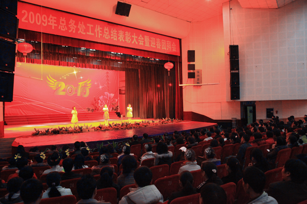 1月14日,学院大礼堂张灯结彩,笑声歌声掌声阵阵。总务处在这里隆重表彰2009年度优秀职工,举行新年团拜会。