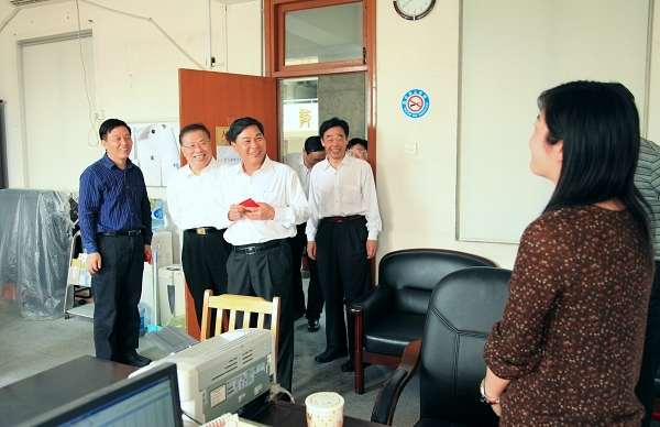 周书记一行每到一处,与教职工们亲切交谈,送上新年的祝福,提出工作希望与要求。周书记语重心长地对院办工作人员说:“办学五年来,你们克服困难,取得了很大成绩。希望大家继续努力,乘势而上,牢牢把握发展机遇,创造新的业绩。”