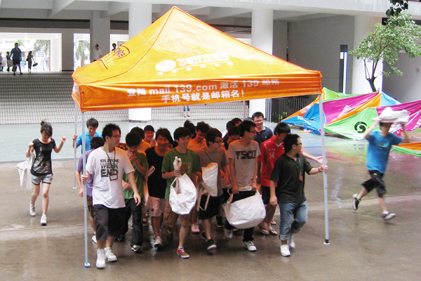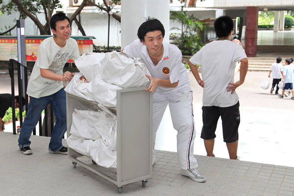 尽管刮风下雨,但仍然阻挡不了师生们的搬迁工作。