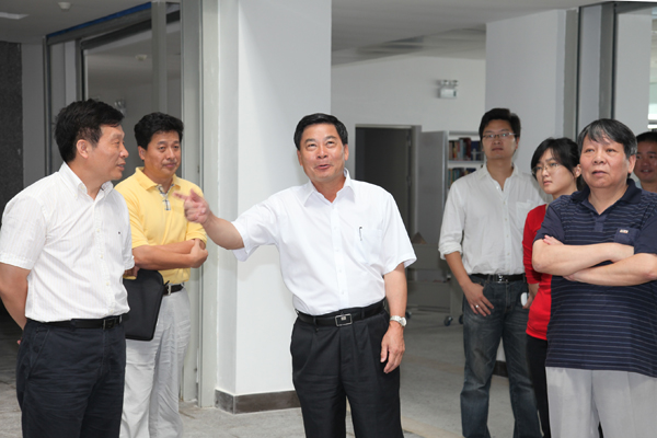 随后,周书记与院领导又来到刚刚完成主体搬迁工作的新图书馆总服务台及阅览室。当他们看到图书馆8楼至12楼采用半封闭式,楼层之间用室内楼梯连接,顶楼采用透光性强的玻璃封顶,光线透明度好的设计与布局时,表示非常满意,给予了充分的肯定。
