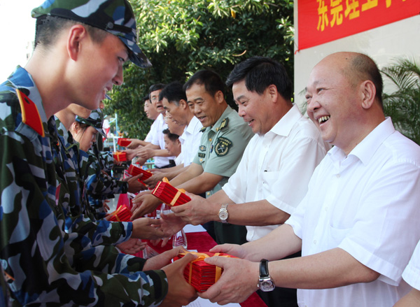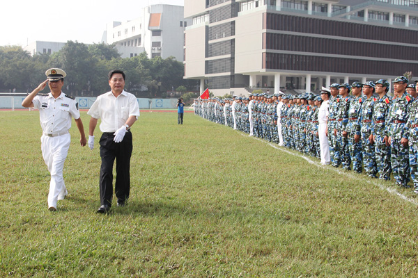 东莞军分区副司令员李建军,东莞理工学院领导周致纳、安少华,东莞理工学院城市学院第二届董事会董事长、广东鸿发集团总裁麦照容,城市学院院、系领导出席典礼并在主席台观看了军训表演,给军训先进个人和连队颁奖。