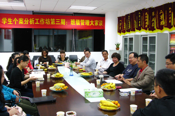 11月11日,学生处在艺术系会议室举办第三期学生个案分析工作坊“班级管理大家谈”。党委副书记朱冰、学生处处长章德胜到会听取艺术系各班班主任的意见。
