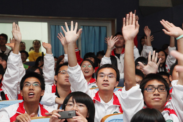 平易近人的两位冠军,让大学生们零距离地领略了冠军风采,大呼过瘾。
