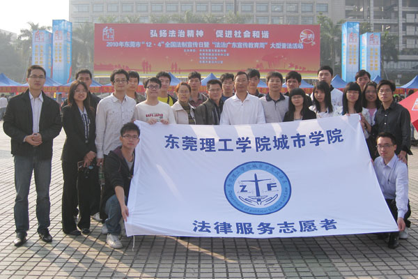 12月4日,由中共东莞市委宣传部、东莞市依法治市办公室、东莞市司法局、东莞市普法办公室联合主办的“弘扬法治精神,促进社会和谐”2010年东莞市“12?4”全国法制宣传日暨“法治广东宣传教育周”大型活动在文化广场隆重举行。东莞市司法局、东莞市中级人民法院等五十多个部门在文化广场设立了咨询台。