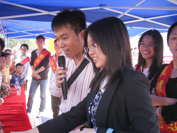 我院政法系30多名师生组成“法律服务志愿队”参加了此次活动。政法系主任刘杰教授、政法系实践办主任王雄文老师和已通过国家司法考试的同学为市民讲解相关法律知识,解答法律问题,提供咨询服务。2009级法学1班陈思颖同学与东莞电台《与法同行》节目主持江晓联袂主持“法律知识有奖问答”,现场与市民进行互动。同时,我院普法志愿者还积极地向到活动现场的市民派发法律知识资料,普及法律知识。东莞市人大常务副主任张继雄、东莞市副市长成洪波、东莞市司法局局长彭启尧等领导到现场亲切慰问了我院师生。