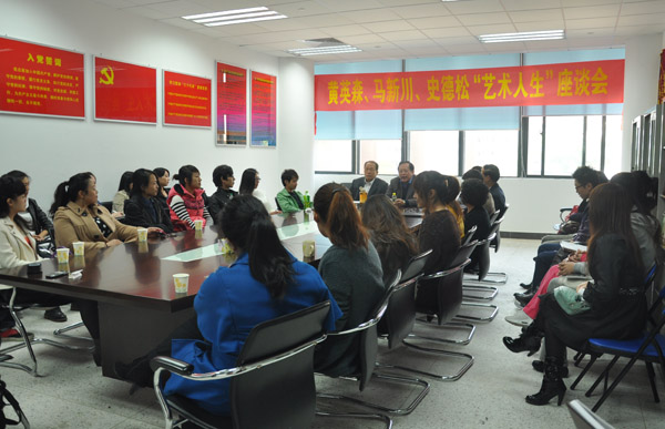 座谈会上,三位教授分别讲述了从教从艺的艰辛,充实的人生经历,以及勤奋、执着的品质。三位教授还讲述了关于艺术和教学中的理论与欣赏水准等实际问题。例如,艺术与生活的关系,教学与科研的关系等。他们结合自己几十年的经历,鼓励年轻教师在教学过程中要不断充实自己,勇于创新;希望学生们在以后的学习与工作过程中要坚持自己的追求,把握好人生目标和方向。