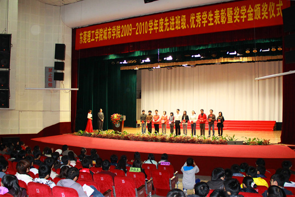 12月16日, 2009-2010年度先进班级、优秀学生表彰暨奖学金颁奖仪式在城市学院大礼堂隆重举行。东莞理工学院副校长、城市学院院长安少华,城市学院第二届董事会董事、广东鸿发投资集团副总裁黎建烨,城市学院领导程发良、朱冰、张林出席会议并为获奖班级及个人颁奖。