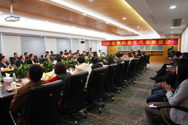 12月24日, 东莞理工学院城市学院董事会在鸿发集团13楼会议室召开教工代表座谈会,征求和听取专家教授对学院发展规划编制工作的意见。