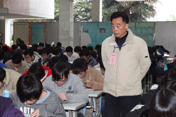 千人大考场 朱志德书记巡视考场 同学们冒着寒冷天气沉着应试 诚信守纪,考出风格