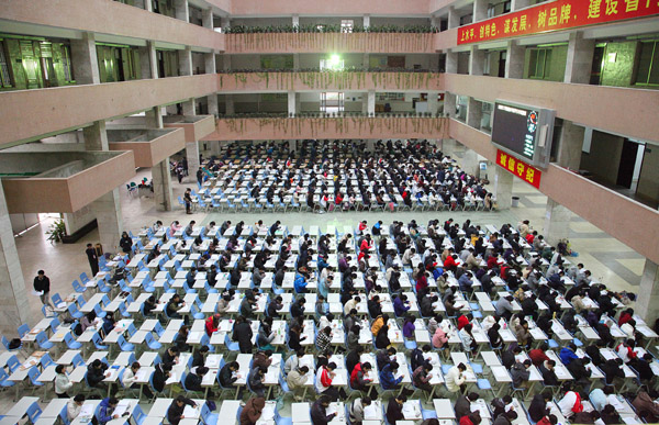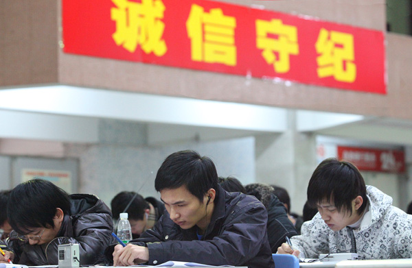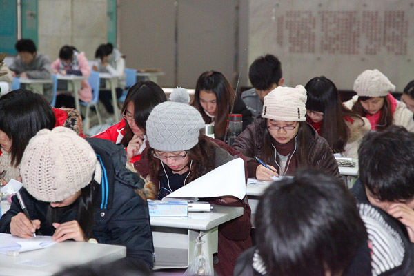 1月4日,城市学院2010—2011学年度第一学期期末考试在习习寒风中拉开帷幕,2000多名学生走进各自考场接受检验。