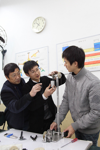 (图为金工实习中心教师指导学生制作“无碳小车”)
