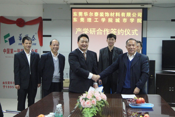 3月15日,我院机电工程系主任黄健求教授、机械教研室主任殷素峰博士、实践办主任蹇永良副教授,代表学院在东莞华尔泰装饰材料有限公司举行了产学研合作协议签订仪式。