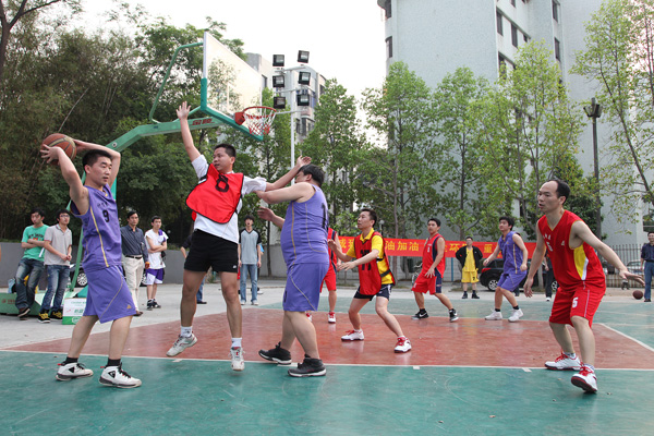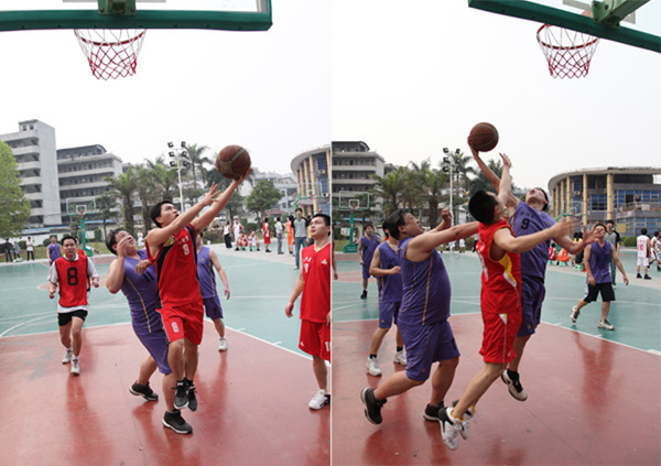 伴随着裁判员的第一声哨响和场外观众的欢呼呐喊,场上的气氛顿时活跃了起来。漂亮的抢断、完美的过人、三分线外的远投、一次次的篮下强攻,构成了一幅幅激烈动人的风景!4月11日,城市学院第五届教工男子篮球赛在图书馆球场拉开帷幕。本次比赛为期两周,共有12支队伍参赛。
