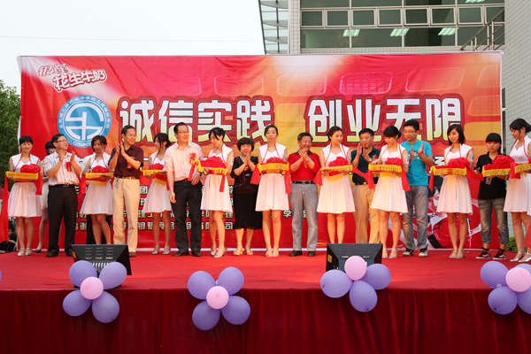 4月18日傍晚六时,一番劲歌热舞后,以“诚信实践,创业无限”为主题的第六届工商模拟市场在第一饭堂前精彩开市。院党委副书记朱冰、院督学陈丁堂、学生处处长章德胜、党委宣传部部长何鹏举、管理系主任罗余才等为工商模拟市场剪彩,并齐祝各位“小老板”生意兴隆。此次工商模拟市场为期四天,一共有104个摊位,分为综合区、美食区、烧烤区三大经营区。