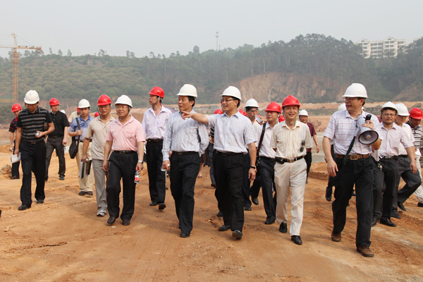 会议之前,城市学院董事、鸿发集团副总裁黎建烨,城市学院董事、新校区筹建办主任杨敏林,带领与会人员参观了施工现场并介绍了相关情况。