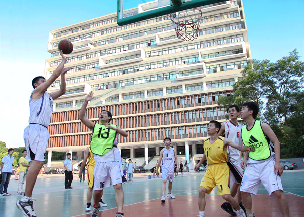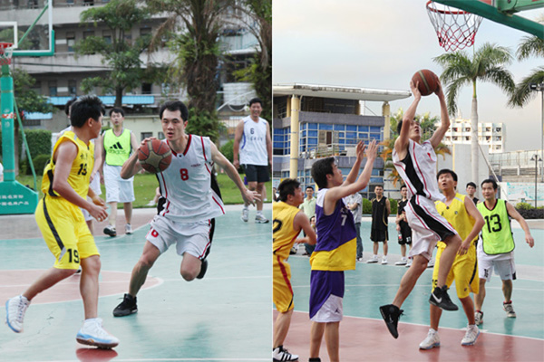 5月9日,教职工篮球精英对抗赛决赛在教工篮球场进行。教工联队、体育教学部代表队、总务处员工代表队、保卫队员代表队进入最后四强的争夺。