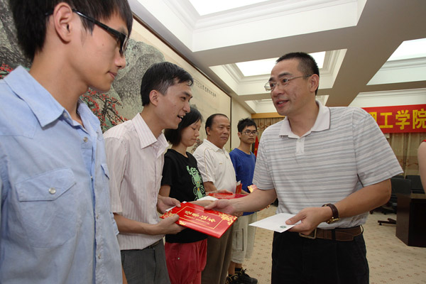 城市学院机电系主任黄健求教授一人获得两个二等奖,黄教授毕业于清华大学,虽到了退休年龄,仍坚持在教学管理第一线。他自豪地说,几年前理工学院征集命名时,我也获奖了,关心学校发展是每个师生的责任。值得一提的是,一等奖获得者全是90后的大学生。他们认为现在的大学生的个人发展需要有创新思维,创新思维能够让大学生开拓思维空间,提高自身的素质。文传系石晓博同学说:“机会是留给有准备的人。这次助我成功的便是充分的准备(收集资料)和活跃的灵感。”