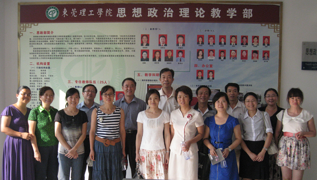 7月4日,思政部全体教师在部主任何鹏举教授的带领下,赴东莞理工学院思政部学习评估经验,并参观了东莞理工学院迎评的资料及教学档案室建设情况。