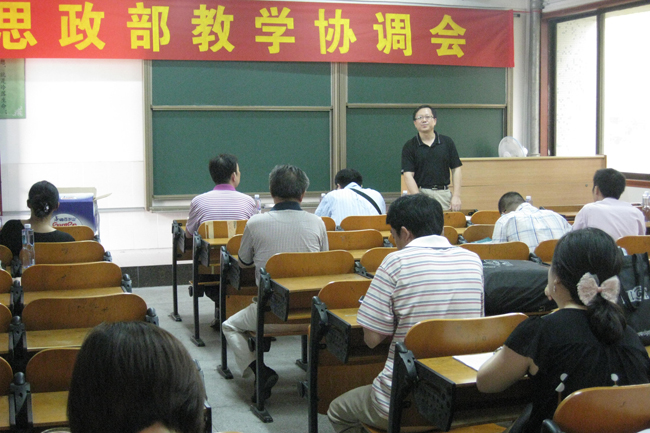 7月6日下午,为加强课程建设,规范教学秩序,保证教学质量,迎接本科学士学位评估和思想政治理论课专项评估工作,思政部在1202课室召开教学协调会。院督学陈丁堂教授,思政部主任何鹏举教授、副主任石志民副教授及思政部专兼职教师28人参加了此次会议。