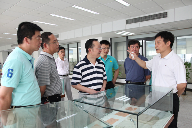 安少华院长与李龙图书记(前排中)一行合影 来宾参观我院图书馆