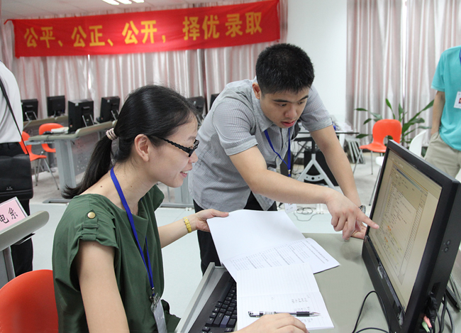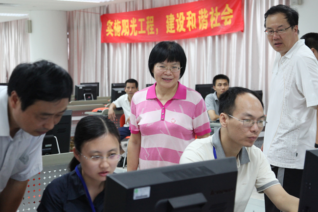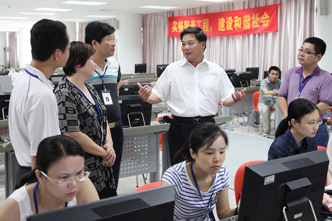 7月31日上午,东莞理工学院党委书记周致纳,在党委副书记、纪委书记黄碧莲的陪同下,专程来到我院招生录取现场检查指导招生工作,并看望慰问招生工作人员。