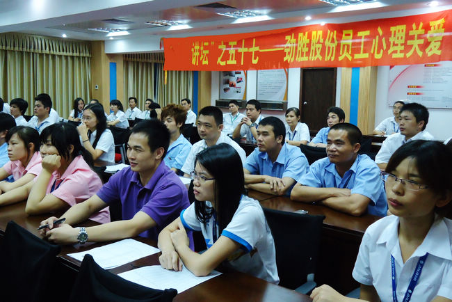 9月8日,管理系黄岳钧老师应东莞劲胜股份有限公司邀请为管理人员做“企业职场员工心理关爱”专题讲座。 “员工心理关爱”是近来理论界与企业界普遍关心的热点问题。学院教师走进企业,既有利于指导于企业转型,又可以更好地服务于教学。据悉,东莞劲胜精密组件有限公司成立于2004年,于2010年正式登陆创业板,年产值约15亿,是国内消费电子精密结构件产品及服务的领先供应商、“外商投资先进技术企业”、“广东省高新技术企业”、“东莞市专利培育企业”。其主要客户包括三星、华为、中兴、海尔、夏普、京瓷、英华达、联想等国际知名消费电子厂商。